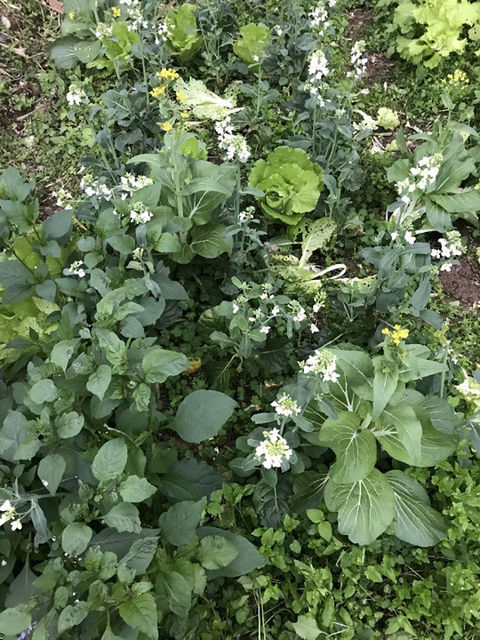 消化不掉, 一堆 芥藍菜 / 黑葉白菜 / 首梯次的青江菜, 已經老化與開花了.