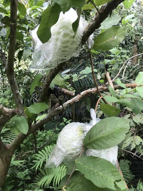 如果先前套袋 200 粒, 剩餘的, 可能不到 30 粒. ( 採掉 80 %, 叮壞, 損壞或是爛掉 5 % ).