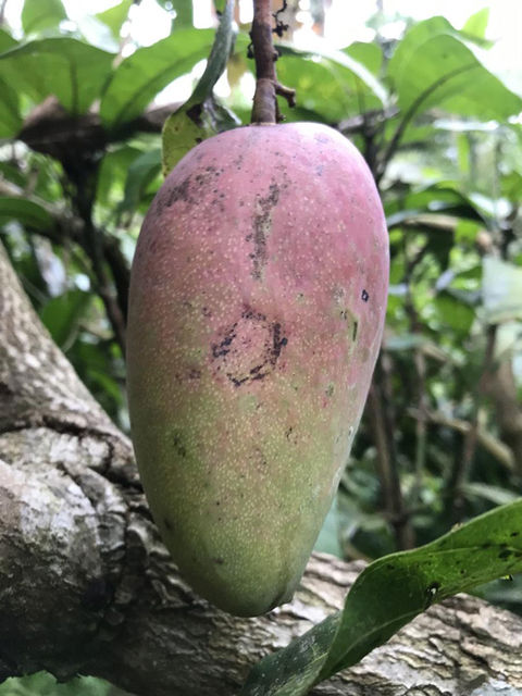 四季芒果, 不到兩棵的果實量, 更 ( 累積 ) 採了七八十粒. ( 分批, 不是全採 ).
