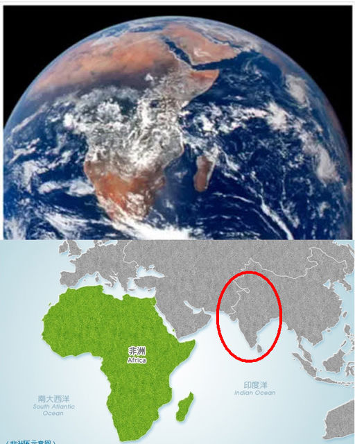 假地球照片的右上側, 理論上, 應該會拍到印度與斯里蘭卡.